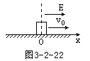 14.在一个水平面上建立x轴,在过原点O垂直于x轴的平面的右侧空间有一匀强电场,场强大小E=6×105N/C,方向与x轴正方向相同,在O处放一个带电量q=-5×10-8C,质量m=10g的绝缘物块,物块与水平面间的动摩擦因数μ=0.2,沿x轴正方向给物块一个初速度v0=2m/s,如图3-2-22所示,求物块最终停止时的位置.(g取10m/s2)