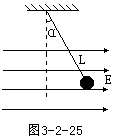 17.如图3-2-25所示,一条长为l的细线,上端固定,下端拴一质量为m的带电小球,将它置于一匀强电场中,电场强度大小为E,方向是水平的,已知当细线离开竖直位置的偏角为α时,小球处于平衡.
