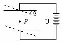 如图3-1-3,P是静止在水平放置的平行板电容器内部的一个带电微粒,现用外力将P点和电容器与电源线的两个接点固定,使两板转过α角,再撤去外力,则P将 ( )