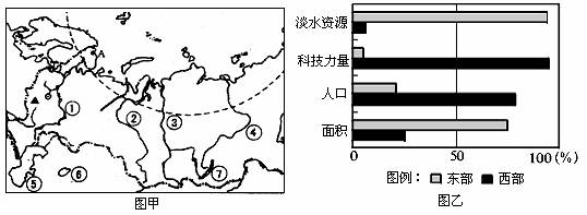 (2)结合图乙,试从人口、资源、经济的角度,分析俄罗斯在经济发展中将进行“东部大开发”的原因。
