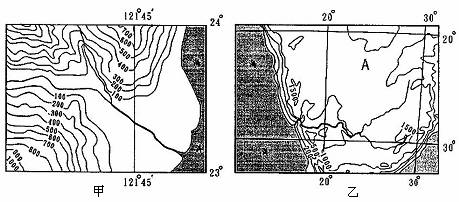 (1)、图甲所示地区的气候类型是 ____________,试从地形角度分析图乙所示地区分布面积最广的气候类型的成因是________________。