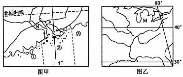 (4)、图甲中N地的农业生产特色是_____________,图乙中M地乳畜业发达,试分析其形成的区位因素______________________。