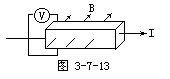 2.有一个未知的匀强磁场,用如下方法测其磁感应强度,如图3-7-13所示,把一个横截面是矩形的铜片放在磁场中,使它的上、下两个表面与磁场平行,前、后两个表面与磁场垂直.当通入从左向右的电流I时,连接在上、下两个表面上的电压表示数为U.已知铜片中单位体积内自由电子数为n,电子质量m,带电量为e,铜片厚度(前后两个表面厚度)为d,高度(上、下两个表面的距离)为h,求磁场的磁感应强度B.