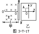 2.如图3-7-17甲所示,图的右侧MN为一竖直放置的荧光屏,O为它的中点,OO′与荧光屏垂直,且长度为L.在MN的左侧空间存在着方向水平向里的匀强电场,场强大小为E.乙图是从左边去看荧光屏得到的平面图,在荧光屏上以O为原点建立如图的直角坐标系.一细束质量为m、电量为q的带电粒子以相同的初速度v0从O′点沿O′O方向射入电场区域.粒子的重力和粒子间的相互作用都可忽略不计.