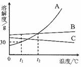 15.A、B、C三种不含结晶水的固体物质的溶解度曲线如图,下列说法中不正确的是