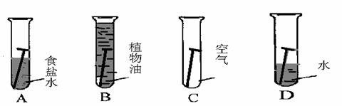 4、(09临沂)光亮的铁钉在下列几种情况下,最不容易生锈的是( )