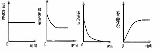 6、(09临沂)将一定量的镁条放入到过量的稀盐酸中,下列表示反应过程中变化关系的曲线,正确的是( )
