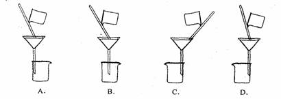 6.下列过滤装置及其操作的简图(图中固定装置和混合液、滤液均省略,且玻璃棒末端均已轻靠漏斗内的三层滤纸处),其中正确的是 ( )