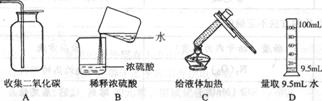 15.将下列各仪器名称前的字母序号与其用途相对应的选项填涂在答题卡相应位置。