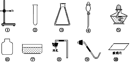 (1)若用氯酸钾和二氧化锰来制取氧气,你认为除需要用到上面的⑥⑦⑩仪器外,还需上面的仪器有 (填序号)。![]()