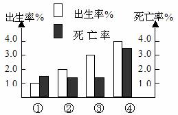 例2:下图为四个国家的人口出生率和死亡率图,读图完成(1)-(3)题。
