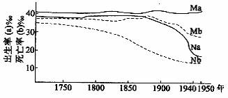 例题3:下图为M、N两国一定时期内出生率和死亡率曲线图,据图回答(1)-(2)题。