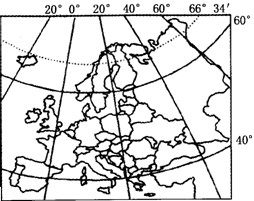 0º经线经过英国伦敦,60ºE经过乌拉尔山脉,南欧三大半岛分别经过0º经线、10ºE和20ºE,40ºN经过地中海,北极圈经过欧洲北部。