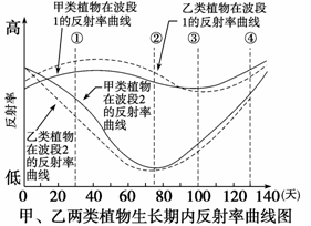 生长期内两个波段上的反射率。在遥感影像上区分这两类植物,应该选择生长期内哪一天的影像最合适( )