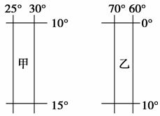 10.图中的甲、乙两区域是两颗卫星在某一时刻分别所覆盖的区域,其服务范围大小是 ( )