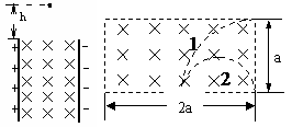 如图所示,一带电微粒从两竖直的带等量异种电荷的平行板上方h处自由落下,两板间还存在匀强磁场,方向垂直纸面向里,