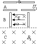 ;B为速度选择器,磁场与电场正交,磁感应强度为
