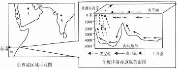 读世界某区域示意图及印度洋沿赤道纵剖面图,回答1-2题。