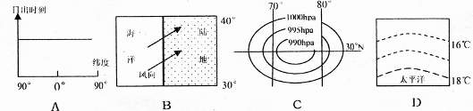 1.当上面右图中a处的上升流最强烈时,下列四幅图中能反映北印度洋地区季节的是