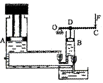 28.(09·宁夏理综·33)(10分)液压千斤顶是利用密闭容器内的液体能够把液体所受到的压强行各个方向传递的原理制成的。图为一小型千斤顶的结构示意图。大活塞的直径D1=20cm,小活塞B的直径D2=5cm,手柄的长度OC=50cm,小活塞与手柄的连接点到转轴O的距离OD=10cm。现用此千斤顶使质量m=4×103kg的重物升高了h=10cm。g取10m/s2,求