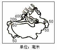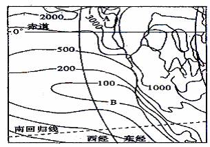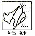 例题:读某区域等降水量图(单位:mm),回答(1)-(2)题。