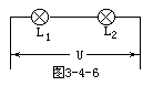 1.如图3-4-6所示,两只相同的白炽灯L1与L2串联后接在电压恒定的电路中,若L2的灯丝断了,经搭丝后与L2串联,重新接在原电路中,则此时L1的亮度与未断时相比,有 [ ]