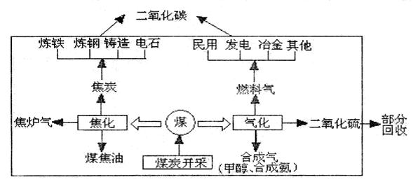 31. [环境与保护]地球是人类共同的家园。中国是个负责任的大国,节能减排是我国近期工作的主要任务。读我国某地煤炭资源开发和综合利用示意图,据此回答下列问题:(1O分)