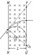 ;第二次粒子刚好能垂直PQ边界射出磁场,表明粒子在磁场中的轨道圆心为图中的O2点,为轨道2,设轨道半径为