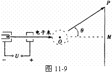 (2002年高考全国卷)电视机的显像管中,电子束的偏转是用磁偏转技术实现的.电子束经过电压为U的加速电场后,进入一圆形匀强磁场区,如图11-9所示.磁场方向垂直于圆面.磁场区的中心为O,半径为r.当不加磁场时,电子束将通过O点而打到屏幕的中心M点.为了让电子束射到屏幕边缘P,需要加磁场,使电子束偏转一已知角度θ,此时磁场的磁感应强度B应为多少?