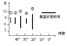 读我国山水风景区最宜欣赏时间与纬度关系图,