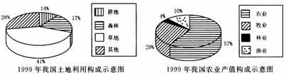 (1)说明我国土地利用构成的特征。(2)说明我国农业产业结构存在的主要问题。