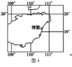 博鳌原为濒临南海的小城镇,它完整地保存了热带水域的原始生态。2001年2月被定为“亚洲论坛”的永久会址。读图4,完成13-14题。