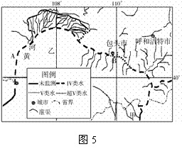 图5为“黄河干流部分河段水质状况分布图”,完成15-18小题。