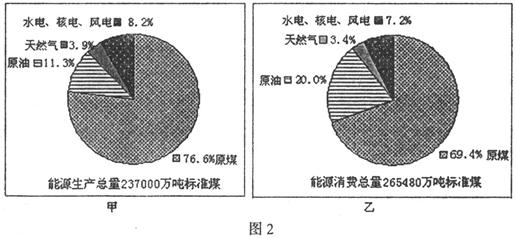 读下列我国能源生产和消费构成示意图,回答问题20-22题。