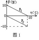 例2、一个物体同时受到两个力F1、F2的作用,F1、F2与时间t的关系如图1所示,如果该物体从静止开始运动,经过t=10s后F1、F2以及合力F的冲量各是多少?