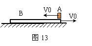 A刚好没有滑离B板,表示当A滑到B板的最左端时,A、B具有相同的速度,设此速度为V,经过时间为t,A、B间的滑动摩擦力为f.如图14所示。