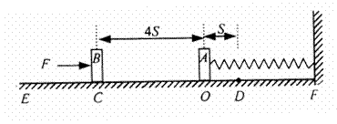 ,物块B运动到O点与物块A相碰并一起向右运动(设碰撞时间极短),运动到D点时撤去外力F。已知CO = 4S,OD = S。求撤去外力后: