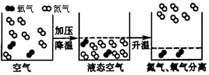 下图是从空气中分离氧气的示意图:请你写出从图中所获得的有关物质组成、结构、性质、变化等信息各一条: