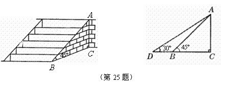 25.某风景管理区,为提高游客到某景点的安全性,决定将到达该景点的步行台阶进行改善,把倾角由45°减至30°,已知原台阶坡面AB的长为