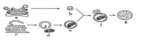 A.由图判断a 、b 、c 、d 依次是高尔基体、溶酶体、内质网和线粒体 B. b 与e 演变成f ,证明了膜的选择透过性 C.由图推断a 与b 膜的组成成分最接近 D.如果细胞中a 的数量增加,则高尔基体成分更新的速度会加快
