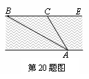 20.(本小题8分)如图,小强在江南岸选定建筑物A,并在江北岸的B处观察,此时,视线与江岸BE所成的夹角是30°,小强沿江岸BE向东走了500m,到C处,再观察A,此时视线AC与江岸所成的夹角∠ACE=60°.根据小强提供的信息,你能测出江宽吗?若能,写出求解过程(结果可保留根号);若不能,请说明理由.