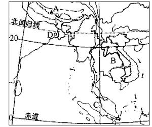 ⑷B河流沿岸最大城市名称是 。