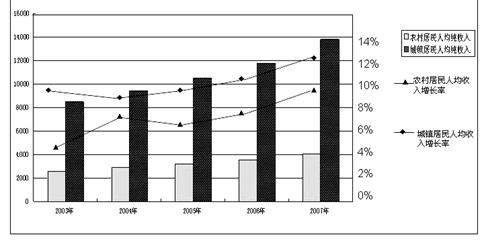 27、.图1:2003-2007年我国城乡居民人均收入及其增长率