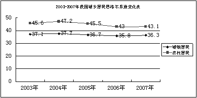 图2:2003-2007年我国城乡居民恩格尔系数变化