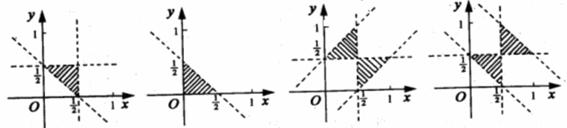设集合A={(x,y)|x,y,1-x-y是三角形的三边长},则A所表示的平面区域(不含边界的阴影部分)是 ( ▲ )