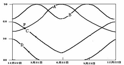 下图中ABCD分别表示不同地区正午太阳高度随四季的变化图,读图回答1-3题: