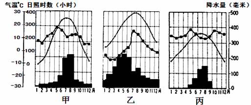 C.丙地海拔更高 D.丙地纬度更高