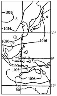 28.读世界局部地区某月海平面等压线图,回答问题:(13分)