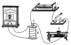 现将电池组、滑线变阻器、带铁芯的线圈A、线圈B、电流计及开关如下图连接。在开关闭合、线圈A放在线圈B中的情况下,某同学发现当他将滑线变阻器的滑动端P向左加速滑动时,电流计指针向右偏转。由此可以推断[ ]![]()