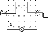 (2005天津理综将硬导线中间一段折成不封闭的正方形,每边长为l,它在磁感应强度为B.方向如图的匀强磁场中匀速转动,转速为n,导线在a、b两处通过电刷与外电路连接,外电路有额定功率为P的小灯泡并正常发光,电路中除灯泡外,其余部分的电阻不计,灯泡的电阻应为[ ]![]()